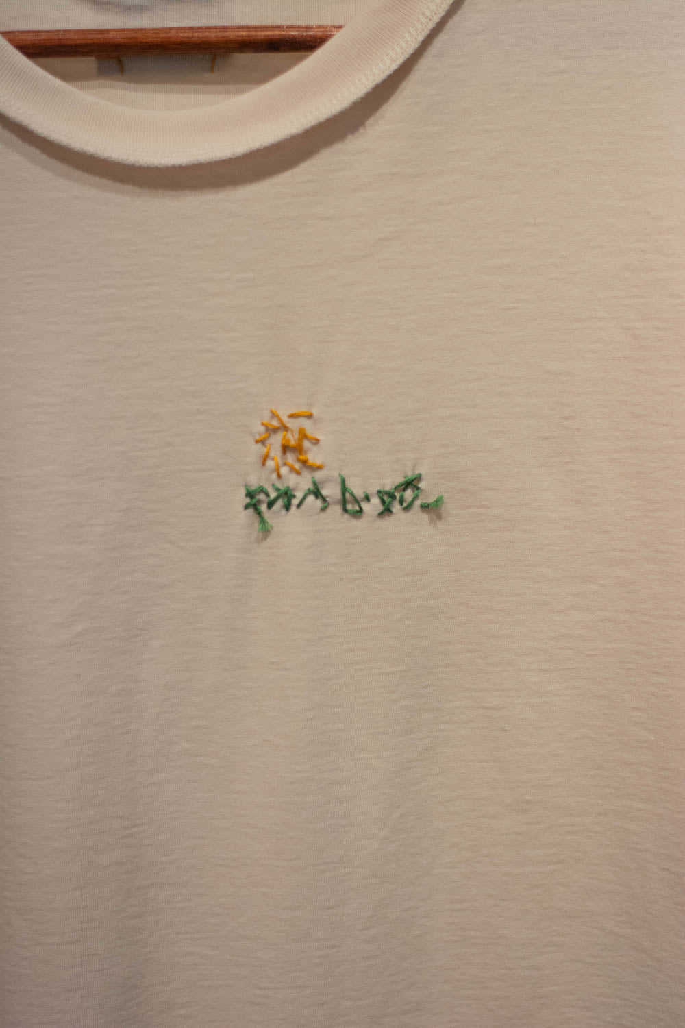 T-shirt unisex SAUVAGE brodé à la main (lisible face au miroir)