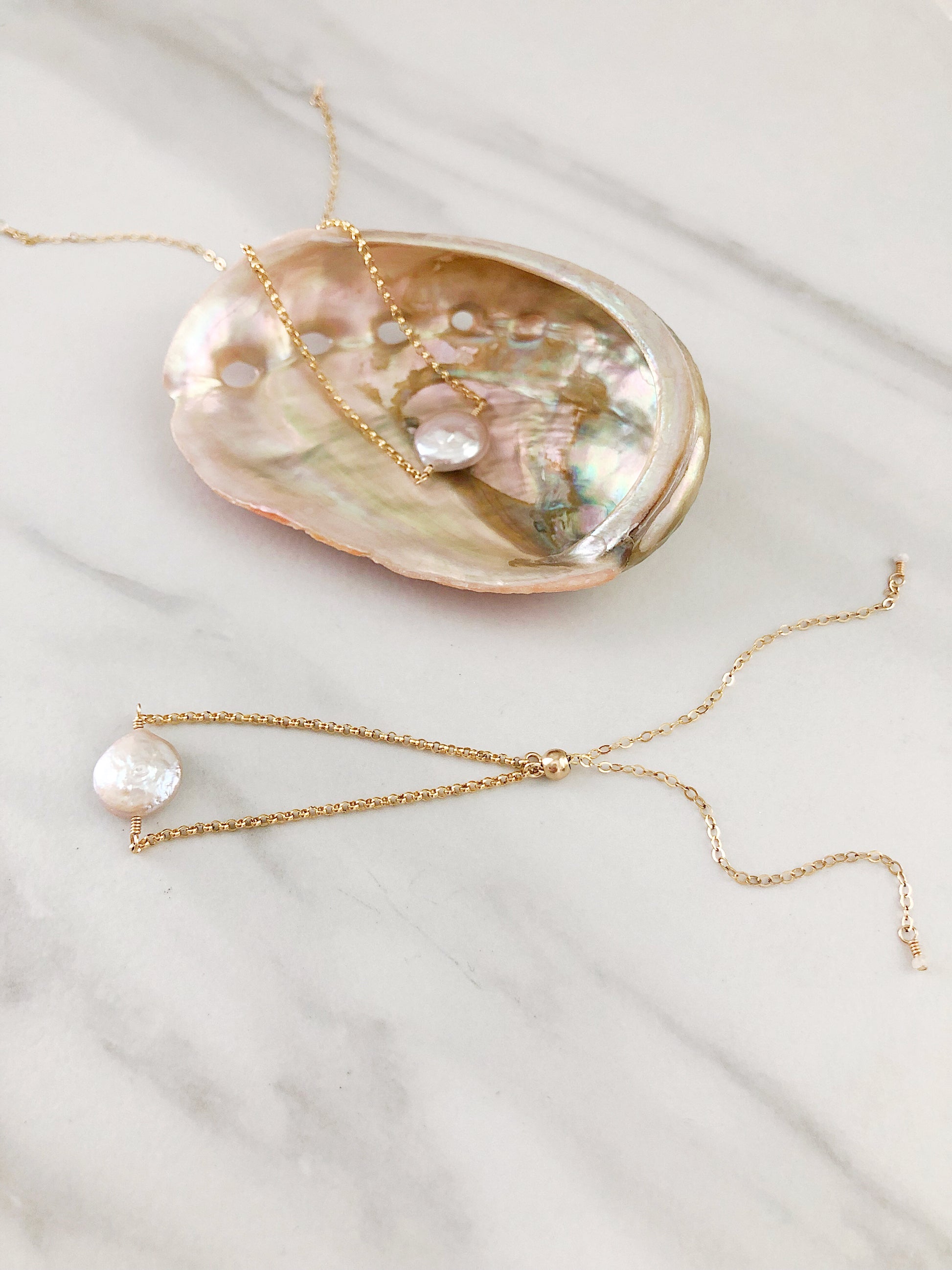 - Matériel: chaîne simple en or - gold-filled - 14 carats et perle naturelle