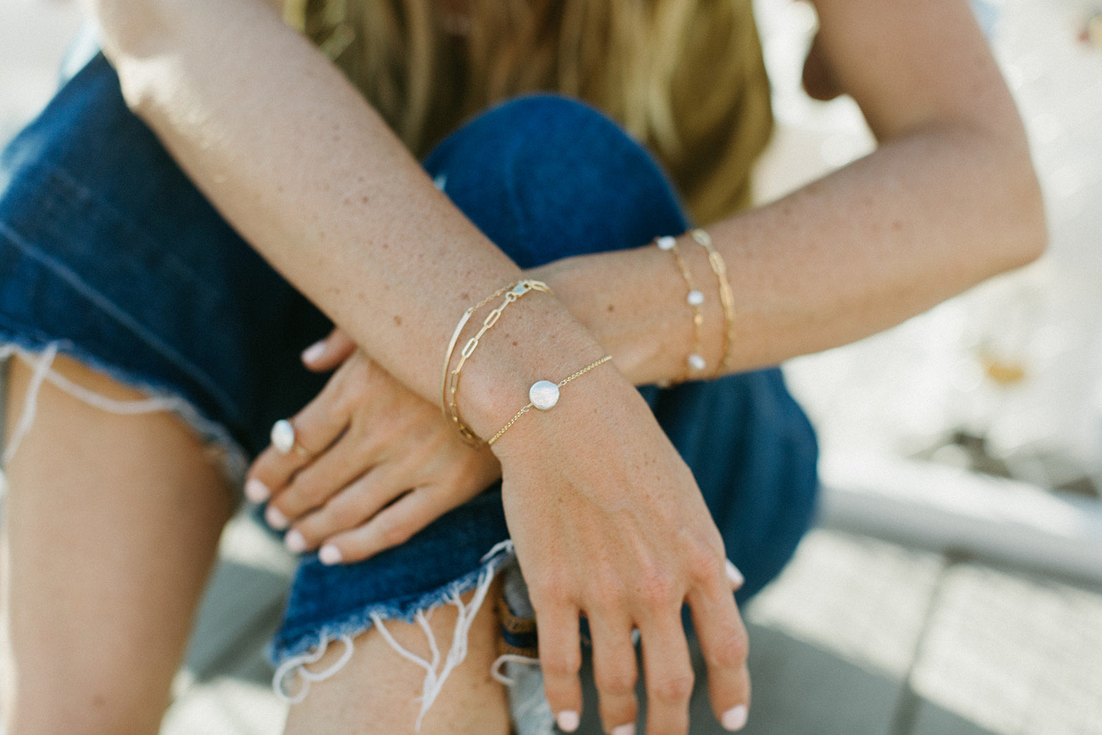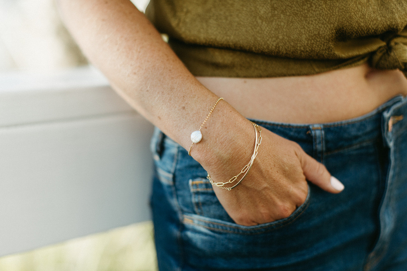 Le bracelet Capri est une des pièces incontournables de Uncvrd Jewelry. Ce bracelet scintillant avec sa perle naturelle est la touche finale parfaite à ta tenue.