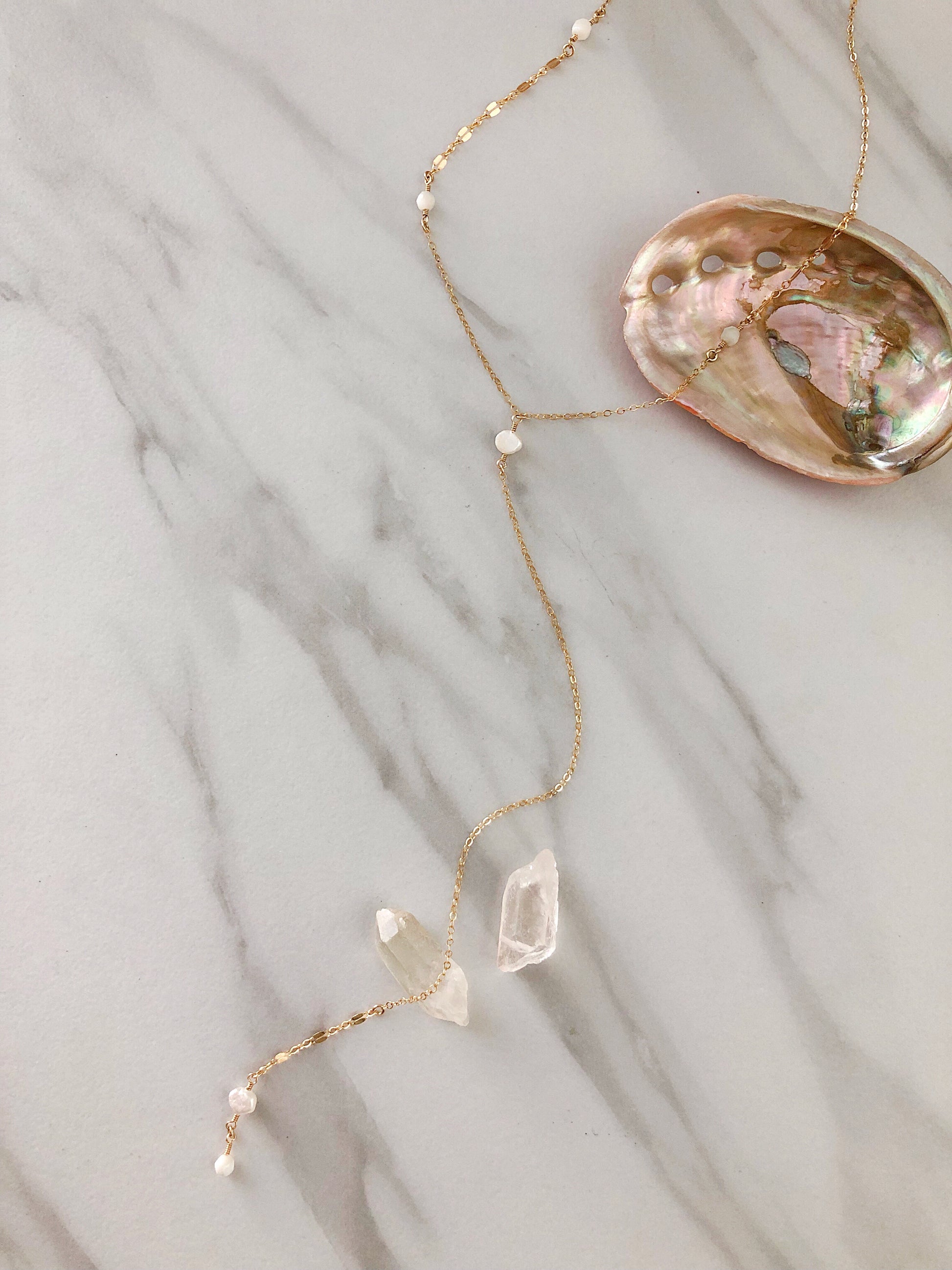 Facile à porter, avec sa touche très féminine, le collier Andrina avec ses perles Lariat sur sa longe délicate ira avec tout. Tu peux également le porter sur un joli décolleté dos nu.